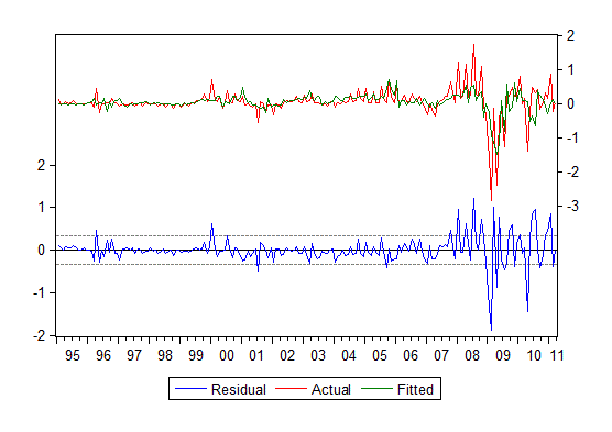 DeleteThanks for your helpful post. In the restricted ECM estimation, is it necessary to worry about the value of R square? Yours is 0.37 and mine is also around that.